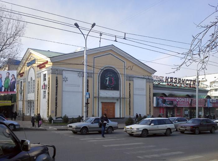 Кинотеатр «Казахстан» построили в 1955 году по проекту архитектора Н. Простакова в стиле неоклассицизма. Он был первым в республике двухзальным кинотеатром и вмещал свыше 700 человек.