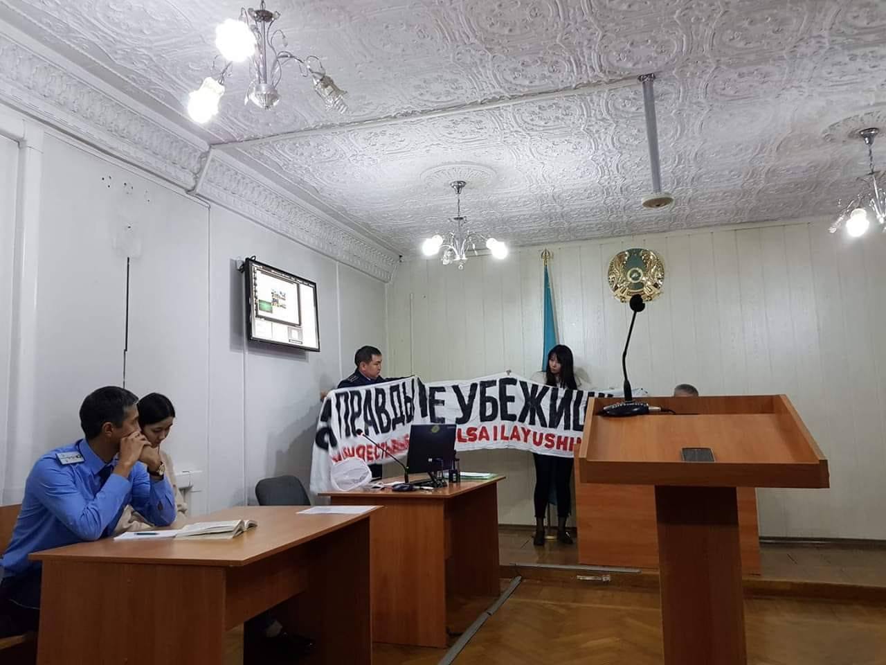 Асия Тулесова и Бейбарыс Толымбеков предстали перед судьей Специализированного межрайонного административного суда Ержаном Алдабеком за нарушение части 3 статьи 448 кодекса об административных правонарушениях (нарушение законодательства Республики Казахстан о порядке организации и проведения мирных собраний, митингов, шествий, пикетов и демонстраций). Суд посчитал, что они провели несанкционированный митинг и приговорил их к 15 суткам административного ареста.