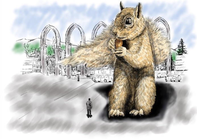 Ринслер отмечает, что белка символизирует жизнь горожан. «Белка - такой же житель города. Она обитает здесь больше ста лет, и у неё точно так же возникают сложности в городской среде. В своих лапах алматинская белка будет держать желудь как награду и символ надежды на будущее», - отметил Алекс Ринслер.