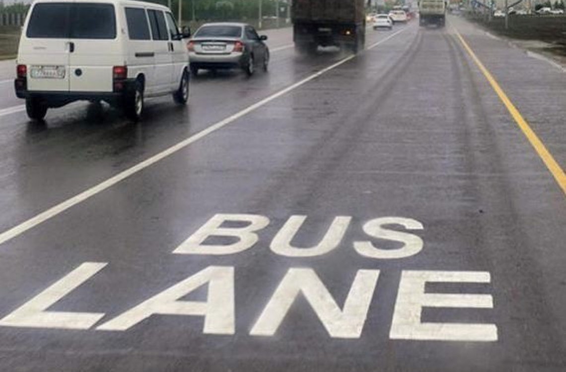 25 сентября планируется запуск выделенной автобусной полосы Bus Lane по улице Мухамедханова от улицы Айтматова до проспекта Туран.