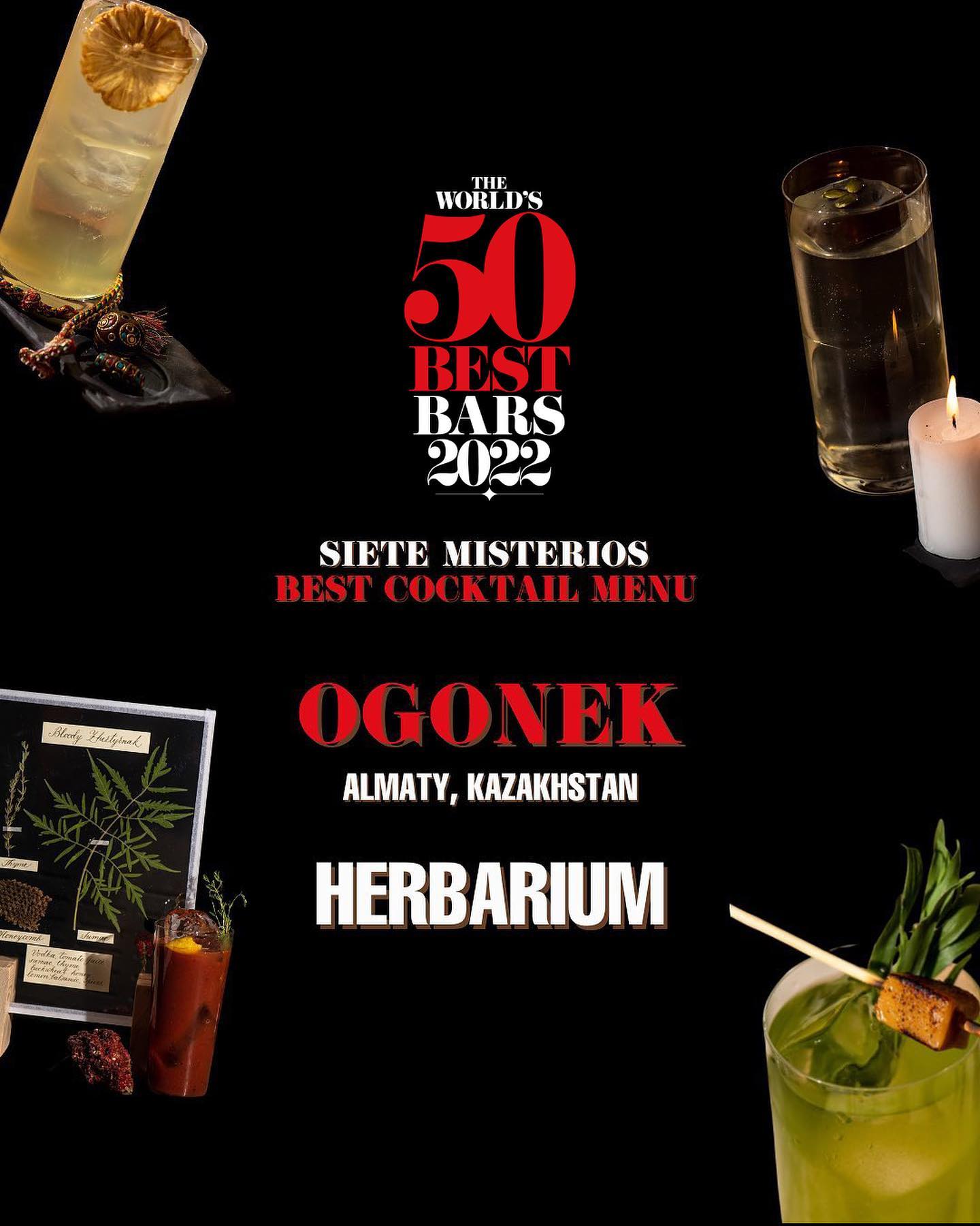 Барное меню казахстанского ресторана высоко оценили судьи престижного рейтинга World’s 50 Best Bars, сообщает телеграм-канал Mixology. В итоге «Огонек» получил премию и вошел в топ-3 в категории «Лучшее коктейльное меню 2022» наряду с баром Juliana (Эквадор) и известным французским рестораном Little Red Door.