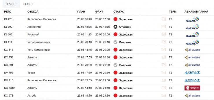 Кроме того, в связи с погодными условиями аэропорт Нур-Султана закрыт для взлета и посадки до полуночи. Метель продолжается. Многие рейсы задержаны или отменены.