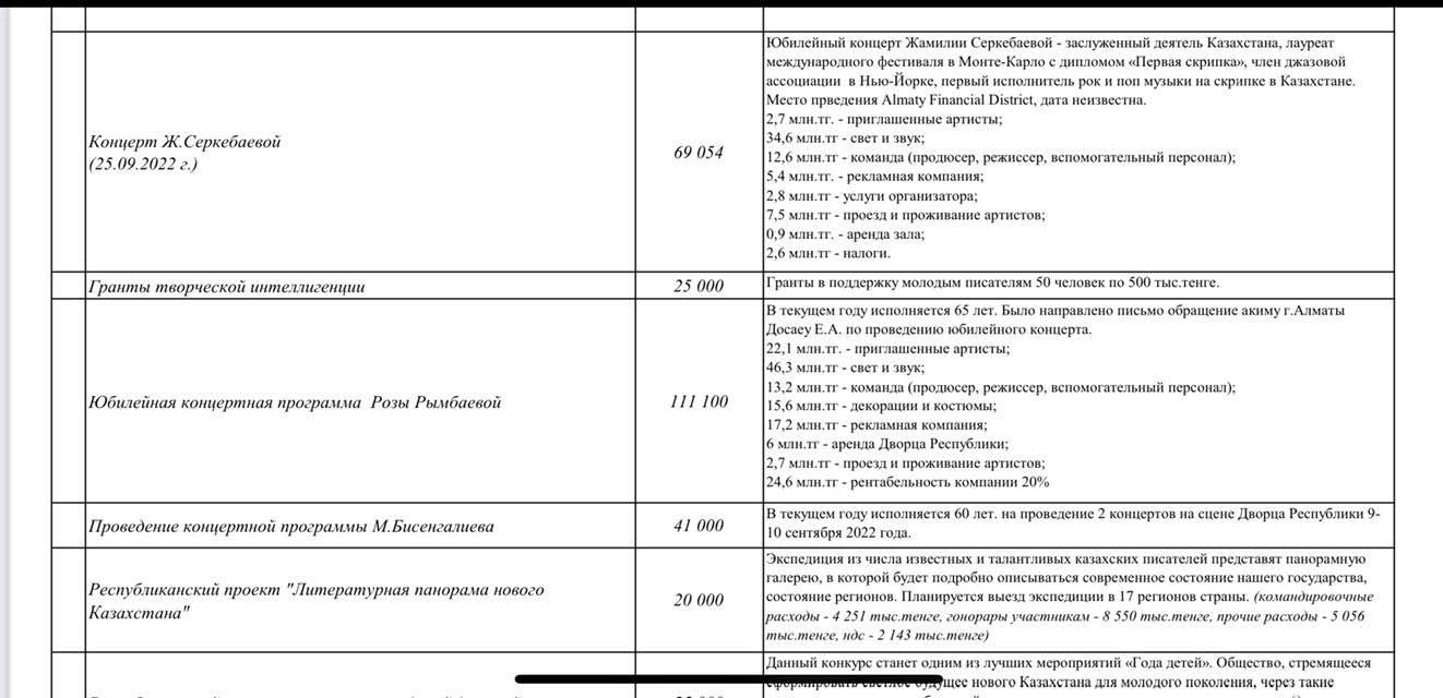 «220 млн.тенге на помощь трем популярным артистам провести свои концерты в Алматы это не перебор?