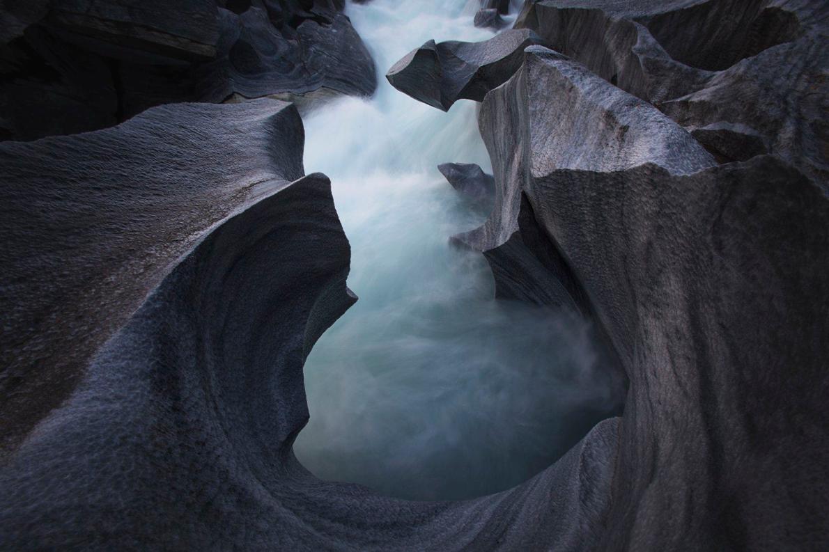 Парящий туман над водами реки Glomåga, которая несет свои воды от ледника Свартисен к озеру Лангватн, расположенному недалеко от города Му-и-Рана в Северной Норвегии, в районе под названием Marmorslottet – «Мраморный замок». Это место представляет собой скопление камней самой необыкновенной формы, создающих фантастический пейзаж. Камни веками размывались и полировались водой, в результате чего приобрели невиданные конфигурации.
