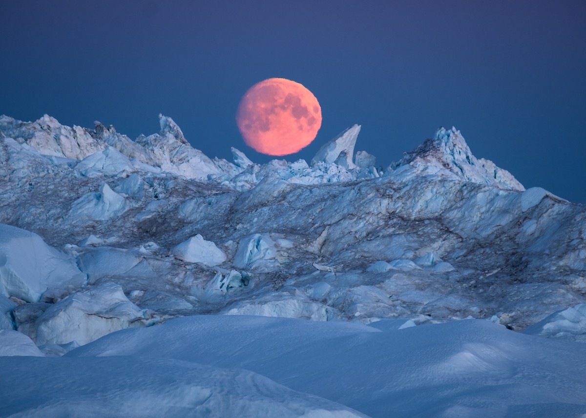 Отличный снимок несёт за собой интересную историю и пробуждает у зрителей эмоции. Возможно, воспоминания, восторг или желание испытать то же самое. Моя любимая работа снята около часа ночи недалеко от города Илулиссат. На этом фото луна восходит над тысячалетними айсбергами, и все это освещено магическим розовым светом от солнца, которое только коснулось горизонта и начинает свое обратное восхождение.