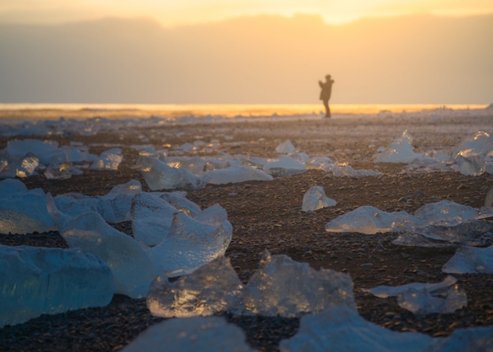 Турист на «Бриллиантовом пляже» в Исландии[/caption]