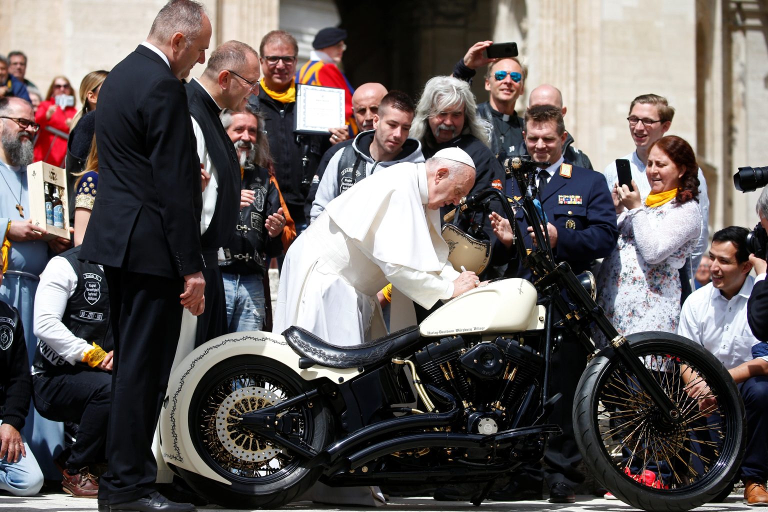Для того, чтобы понтифик поставил там свой автограф, машина была доставлена в Ватикан в сопровождении «Байкеров Иисуса». Там на площади Святого Петра, его Святейшество подписал мотоцикл и благословил байкеров на добрые дела.