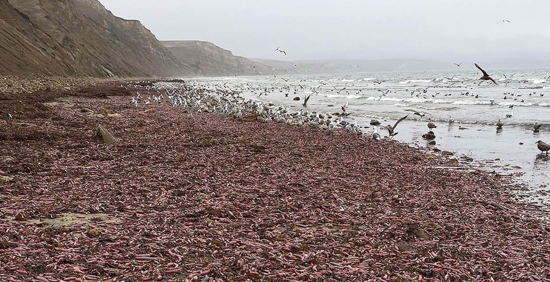 Червей выбросило на берег в 80 километрах к северу от Сан-Франциско.