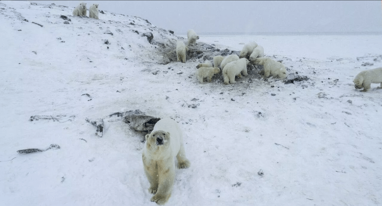 По словам ученых, животные уйдут к традиционным местам охоты, как только замерзнет море, но из-за повышения температур, лед так и не образовался.