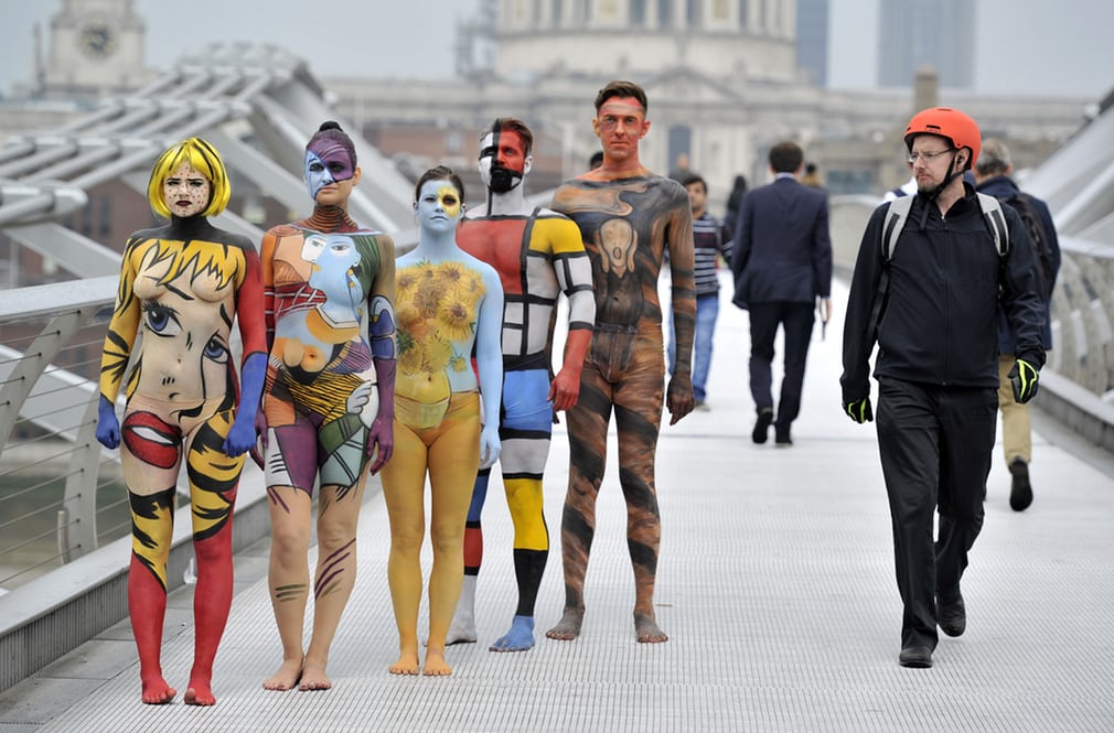Люди-холсты, представляющие известные полотна вышли на улицы, чтобы напомнить Великобритании о великом искусстве. Лондон. Источник