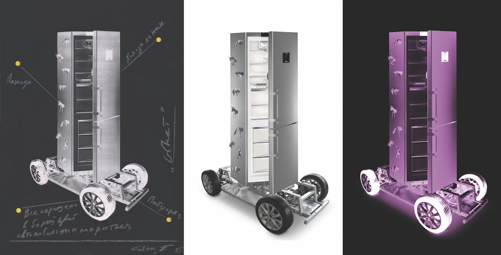 «Не успели. Художники не успели отреагировать, – объясняет Галя. – В прошлом году молодежь ушла в активизм и акционизм, это была мгновенная реакция в Инстаграме в виде постеров, фотографий, игры слов, каких-то таких быстрых и простых способов. Серьезное осмысление, я думаю, начнет появляться только в этом году. Мы решили закончить артбук работой «Трансмиссия благополучия» Галима Маданова и Зауреш Терекбай, этим прекрасным холодильником. Эта работа еще не реализована, это просто наброски, но как будто нельзя будет без них…».