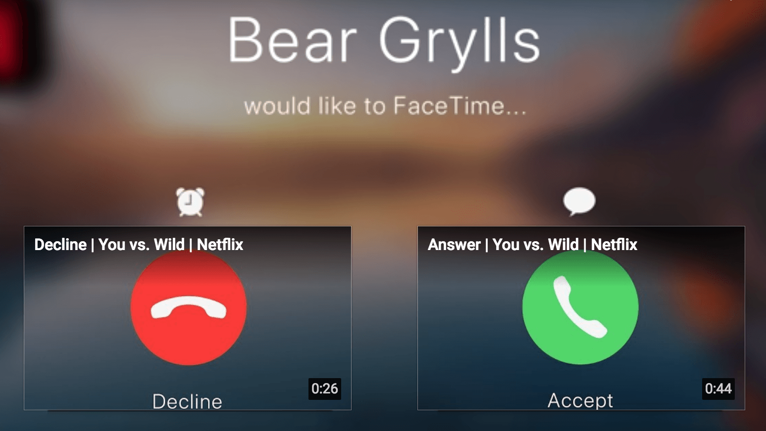 В качестве анонса шоу на официальном YouTube-канале Netflix выпустили трейлер, имитирующий фейстайм-звонок от Беара Гриллса. Зритель может принять или отклонить звонок, после чего он будет перенаправлен на другое видео.