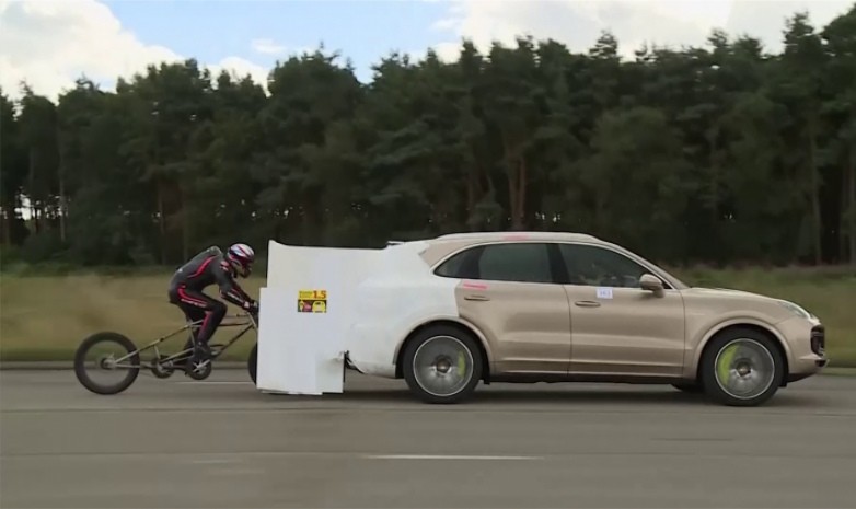 Изюминка в том, что Кэмпбелл побил рекорд скоростной езды на велосипеде среди мужчин, абсолютный рекорд в 296 километров в час был установлен в прошлом году, и принадлежит он американке Дениз Мюллер-Коренек.