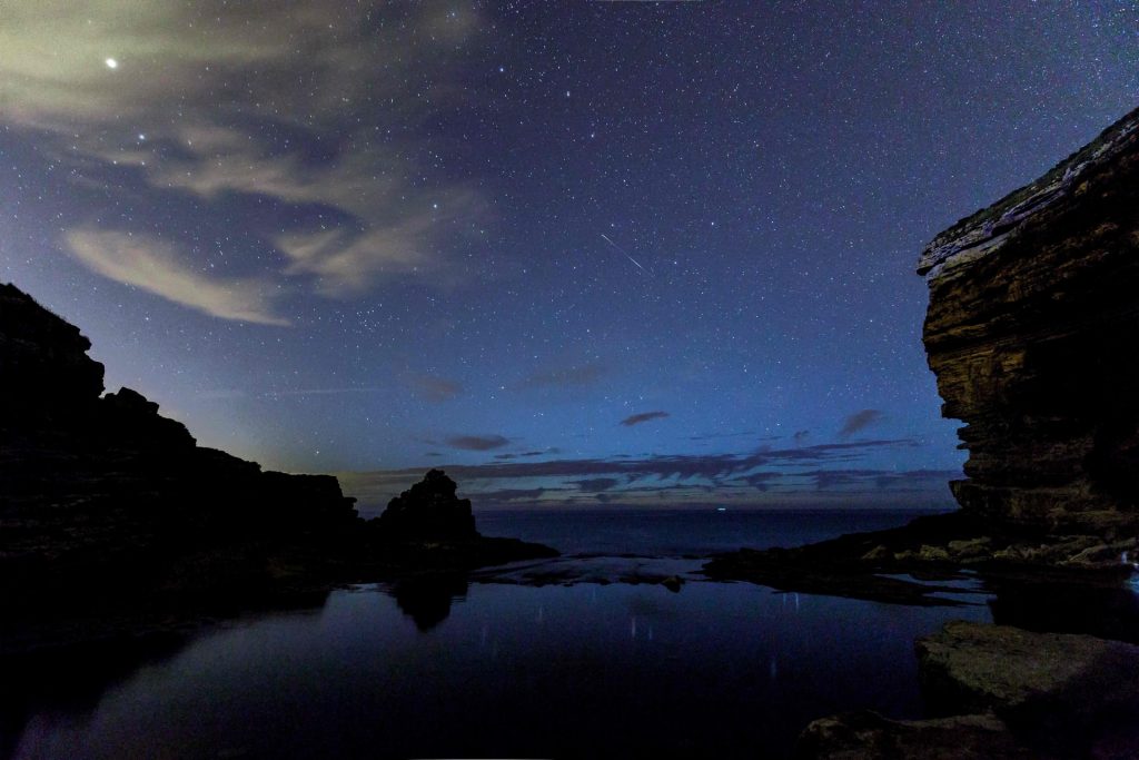 Персеиды (Esq. — метеорный поток, ежегодно появляющийся в августе со стороны созвездия Персея) освещают ночное небо. Комильяс, Испания.