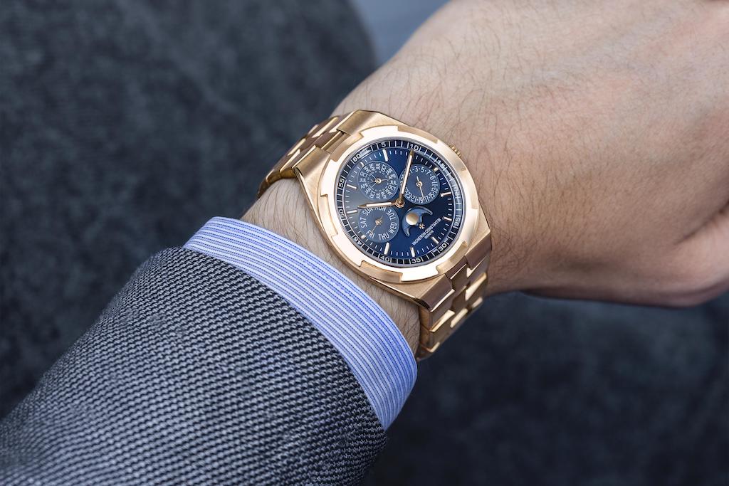 Внутри корпуса новых Overseas, которые имеют диаметром 41,5 мм, находится мануфактурный механический калибр 1120 QP/1 — легендарный ультратонкий механизм с автоматическим подзаводом, вечным календарем и указателем фаз Луны.