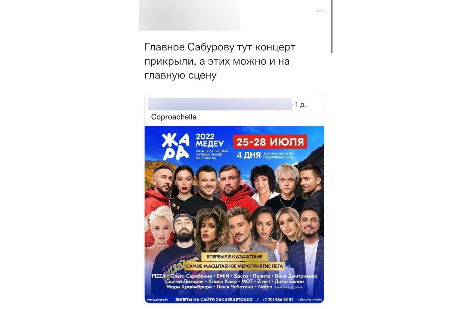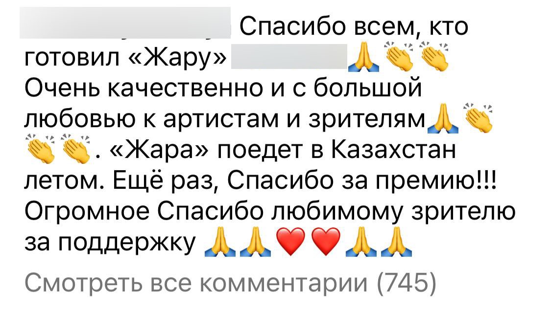 «Уважаемые казахстанцы и жители Алматы! ТОО "Дирекция спортивных сооружений города Алматы", являющееся управляющей компанией ледового стадиона "МЕДЕУ" мұз айдыны", официально сообщает, что распространяемая в социальных сетях информация о проведении на "Медеу" международного музыкального фестиваля "Жара" с участием звезд российской эстрады не соответствует действительности!», - прокомментировали они ситуацию.