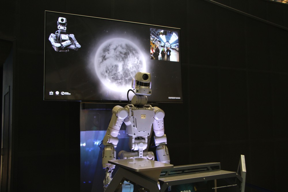 На Международной космической станции прошли первые испытания экзоскелета робота, который позволяет ему работать в режиме копирования: надев специальную маску и перчатки, человек-оператор может заставить "Федора" повторять за ним все движения рук и головы.