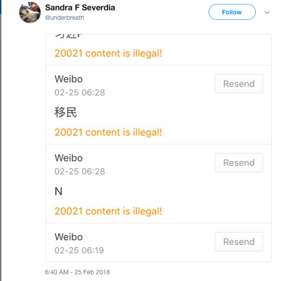 Для использования также были заблокированы названия двух книг Джорджа Оруэлла «1984» и «Скотный двор» и имя Юань Шикайя, бывшего президента КНР, который был настроен на возвращение монархии в правительство страны. Кроме того, жители КНР не могут использовать с десяток других фраз, включая: "культ личности", "бессмертный", "пожизненный" и "Си Цзедун" (совмещение имён Си Цзиньпина и Мао Цзедуна). Неизвестна точная причина почему буква N оказалась вне почета у Компартии, эксперты предполагают, что это попытка остановить людей в написании фразы «n-ное количество лет» или «N сроков правления».
